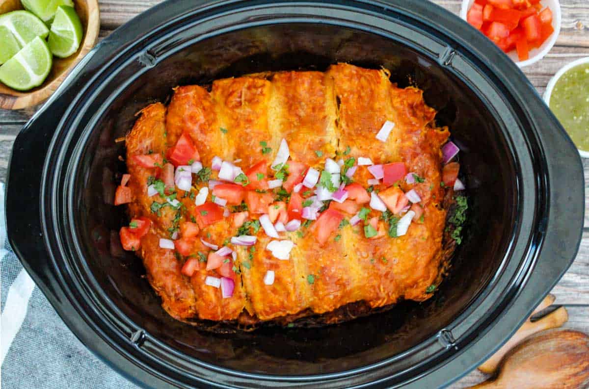 Delicious and easy slow cooker chicken enchiladas perfect for busy weeknights.