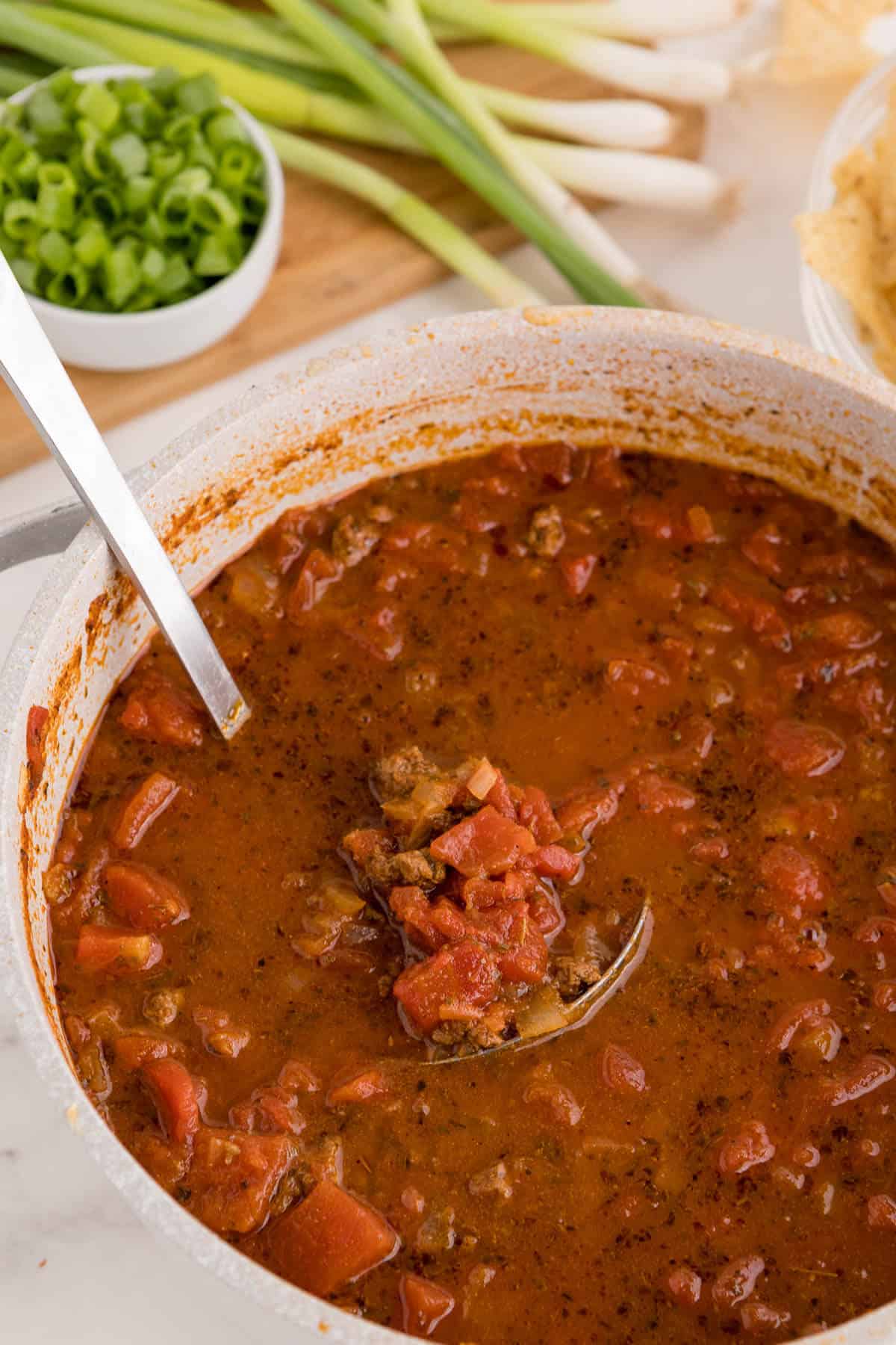 This taco soup is perfect for a cozy night in and can be customized with your favorite toppings.