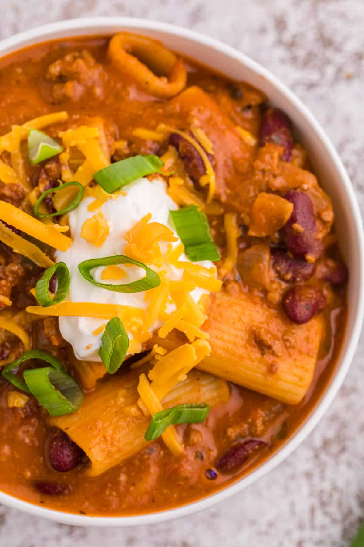 - Combine cooked pasta with the chili mixture. Mix thoroughly and cook for another 2 minutes to heat through.
