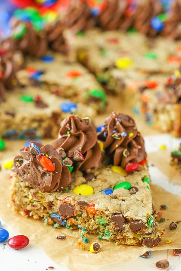 5. Gradually add dry ingredients to wet ingredients and mix until combined. Stir in oats, M&Ms, and chocolate chips.