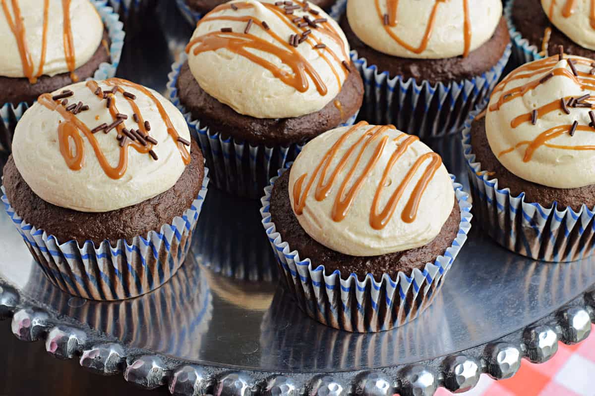 - For the frosting, beat butter with biscoff, sugar, and milk. Adjust milk for desired consistency. Beat for 3-4 minutes until fluffy. Pipe onto cooled cupcakes.