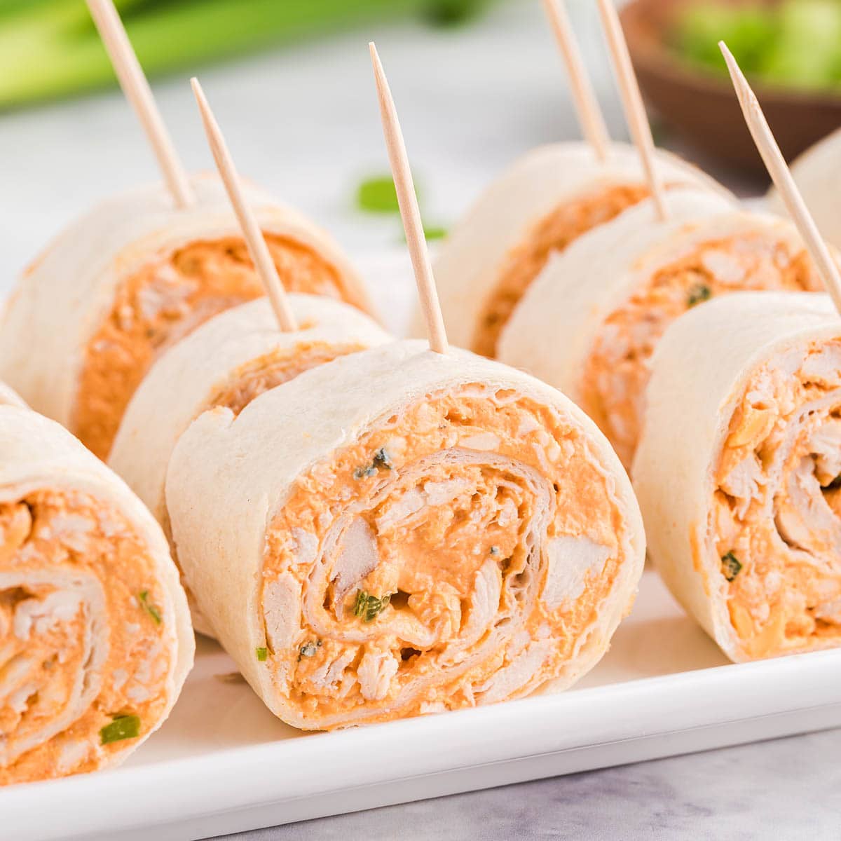 - Spread about 3/4 cup of the buffalo chicken mixture onto each tortilla. Roll up tightly without shifting the filling.